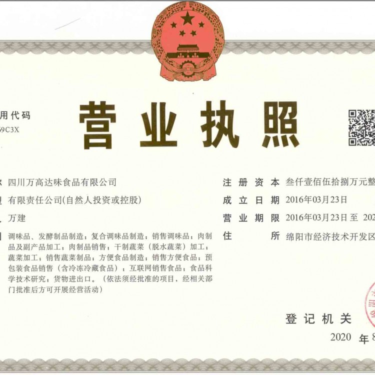 調味品、發酵制品制造;復合調味品制造;銷售調味品;肉制...