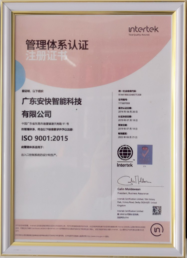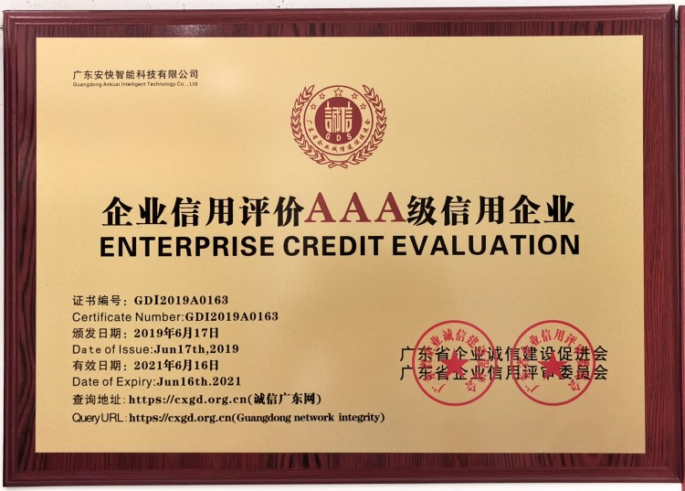 公司的宗旨:“安全、快捷”,安全既是我們對產品質量嚴格要求,也是我們給客戶提供高質量高標準的安全產品??旖葜肝覀儠?快的速度為你提供我們優質的服務。公司于2016年榮獲ISO9001-2008質量體系認證,目前擁有加工裝配車間2.6萬平方米,員工230多人、研發團隊20多人,月生產能力10000多臺。安快智能將會以一*的技術,一*的服務,給您的生活帶來安全和快捷,同時也歡迎新老客戶來公司參觀考察,共贏商機!