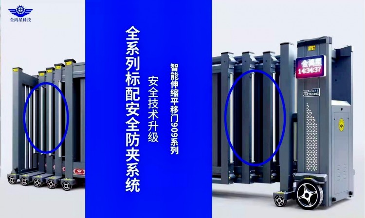 1、伸縮平移門全系標配智能防夾系統,適合學校、企事業單位等安全要求較高場所選擇
