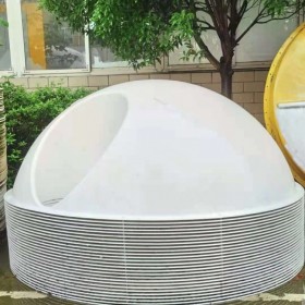 玻璃鋼沼氣池池采用玻璃纖維增強不飽和聚酯樹脂的高強度玻璃纖維復合材料為主體材料,采用,先進的玻璃鋼纏繞工藝制作筒體凹凸面車輪形封頭結構。簡體的壁厚、加盤的間距等采用ansVs結構計算軟件進行強度、鋼度優化設計、結構設計獨特、技‘術領先,具有質量輕、強度高、耐腐蝕性好、無滲漏、無污染、成型性好、使用壽命長等特點。池體兩端設有進、出水管和罐頂設有檢查井口,池內用隔倉板分格,并設有環流泛水裝置以增加污水滯留時間,提高腐化效果。