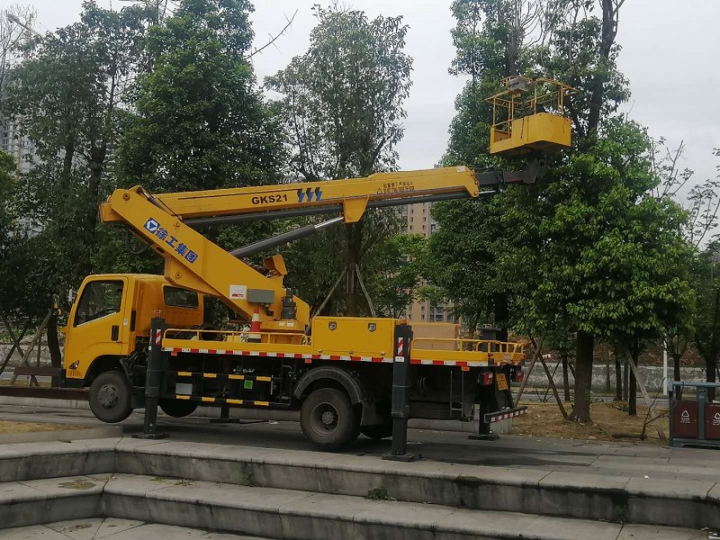 在作業斗內和回轉座上均設有操縱裝置, 遠距離控制發動機的啟動/停止、高速/低速,采用電液比例閥控制臂的動作,平穩性好,工作臂可左、右360°連續旋轉,靠連桿機構自動維持作業槽水平,主泵出現故障時可操縱應急泵下降作業槽,具備夜間照明,可起吊重物。產品被廣泛用于電力、路燈、市政、園林、通信、機場、造(修)船、交通、廣告、攝影等高空作業領域。
