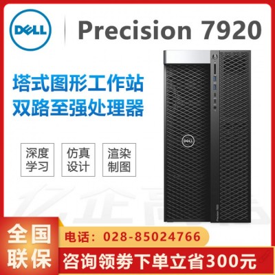 【老板推薦】戴爾(DELL)Precision T7920圖形工作站深度學習模擬仿真三維渲染設計電腦主機 1*銀牌4210R【2.4G 10核20線程】 【推薦】32G丨512G+2T丨P2200 5G