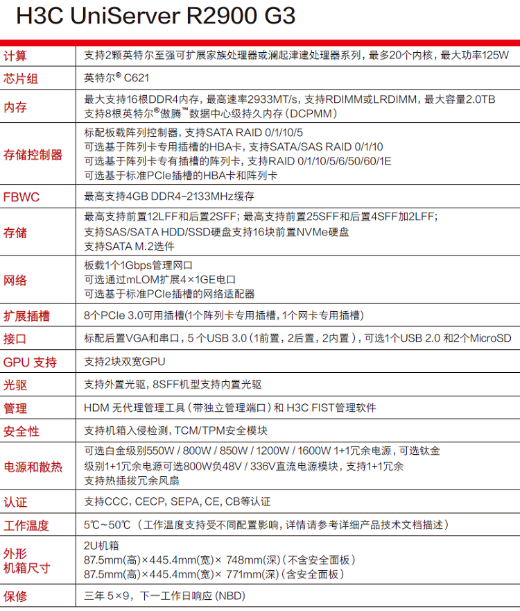 作為H3C UniServer G3 系列的全新產品線,H3C UniServer R2900 G3 旨在滿足中小型企業(SMB)、大型企業和服務提供商的需求。