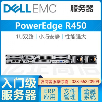 入門推薦:戴爾(DELL)R450服務器主機 intel至強銀牌4209Y 8C/16T 2.8G 2*16G內存/1塊1.2T SAS硬盤