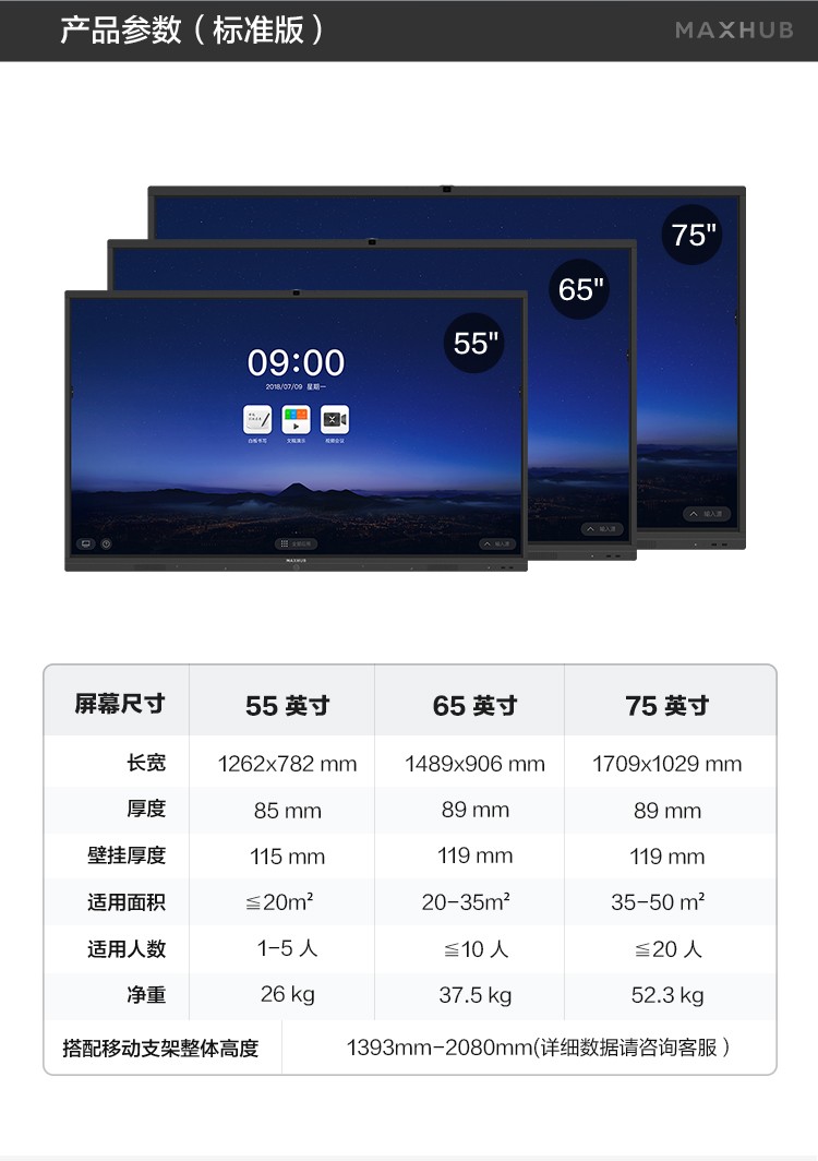 成都MAXHUB V5標準版55/65/75英寸無線投屏教學視頻會議平板電視一體機 標準版65 安卓版