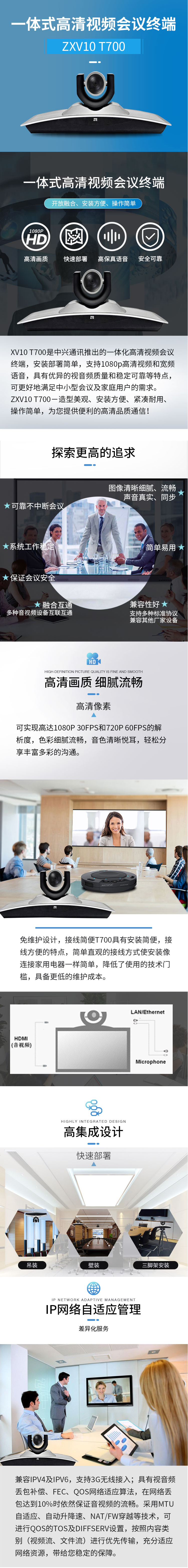 中興(ZXV10)T700 4MX 工業通訊專用 一體化高清會議終端現貨促銷 四川成都中興視頻會議經銷商