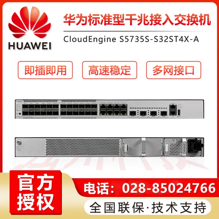 四川成都華為交換機總代理 華為企業級交換機經銷商  華為核心交換機代理商 綿陽華為交換機總代理 南充華為交換機代理商  華為S5735S-S32ST4X-A 24千兆光口 8千兆電 4萬兆光高端企業級光纖交換機報價
