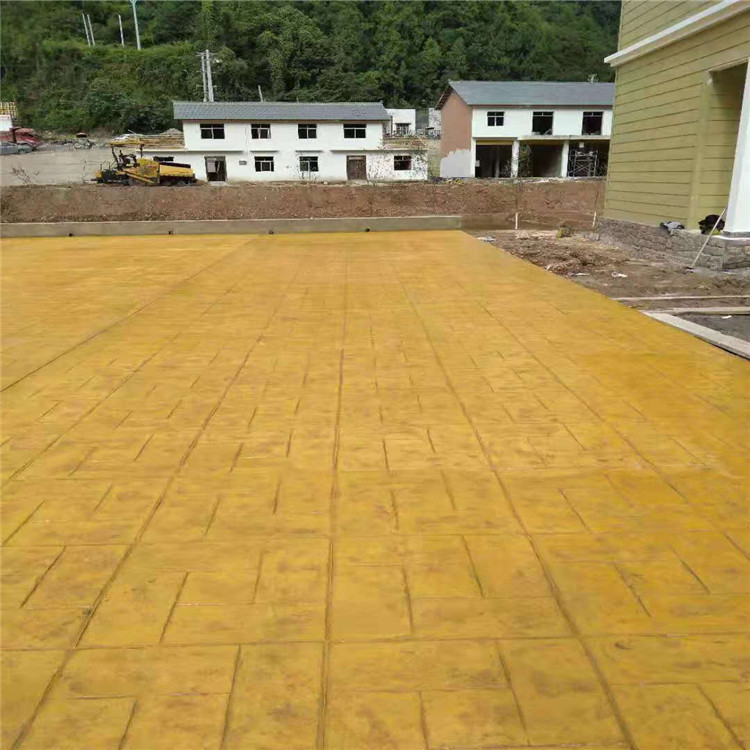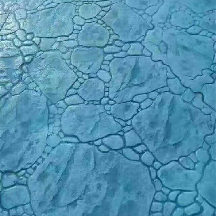 5、使用藝術地坪模具對地坪面層進行紋理處理。藝術地坪模具應配套使用,首先確定好紋理的分布方向,選好一塊模具放置的位置和角度,然后其它的模具依次緊貼一塊模具放置。彩色混凝土藝術地坪壓模采用壓模,壓模應由技術較好的人員進行作業以保證壓紋深度一致和模具放置的準確性。