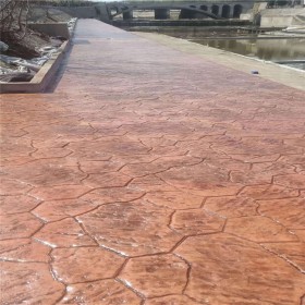 1、混凝土以后,當混凝土初凝由施工人員采用大抹刀對混凝土表面進行收光。收光時應注意表面上是否存在浮漿,如果有多余的浮漿,應刮出。提漿的作用是將彩色強化料與砼完整結合,收光過程中若出現有較大的骨料(石塊)浮在表面應撿出。
