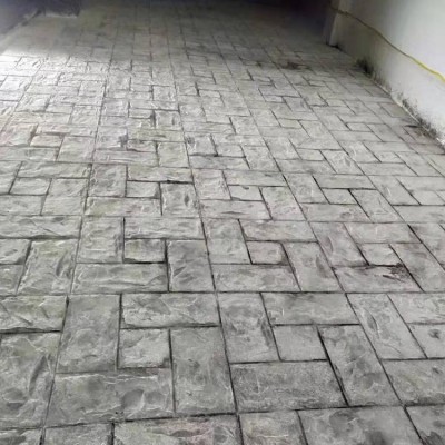 5、使用藝術地坪模具對地坪面層進行紋理處理。藝術地坪模具應配套使用,首先確定好紋理的分布方向,選好一塊模具放置的位置和角度,然后其它的模具依次緊貼一塊模具放置。彩色混凝土藝術地坪壓模采用壓模,壓模應由技術較好的人員進行作業以保證壓紋深度一致和模具放置的準確性。