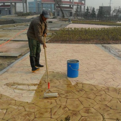 1、混凝土以后,當混凝土初凝由施工人員采用大抹刀對混凝土表面進行收光。收光時應注意表面上是否存在浮漿,如果有多余的浮漿,應刮出。提漿的作用是將彩色強化料與砼完整結合,收光過程中若出現有較大的骨料(石塊)浮在表面應撿出。