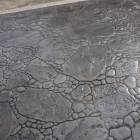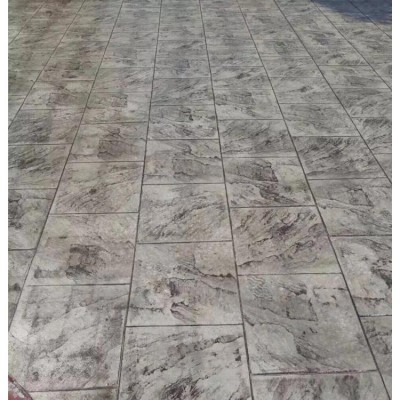 5、使用藝術地坪模具對地坪面層進行紋理處理。藝術地坪模具應配套使用,首先確定好紋理的分布方向,選好一塊模具放置的位置和角度,然后其它的模具依次緊貼一塊模具放置。彩色混凝土藝術地坪壓模采用壓模,壓模應由技術較好的人員進行作業以保證壓紋深度一致和模具放置的準確性。