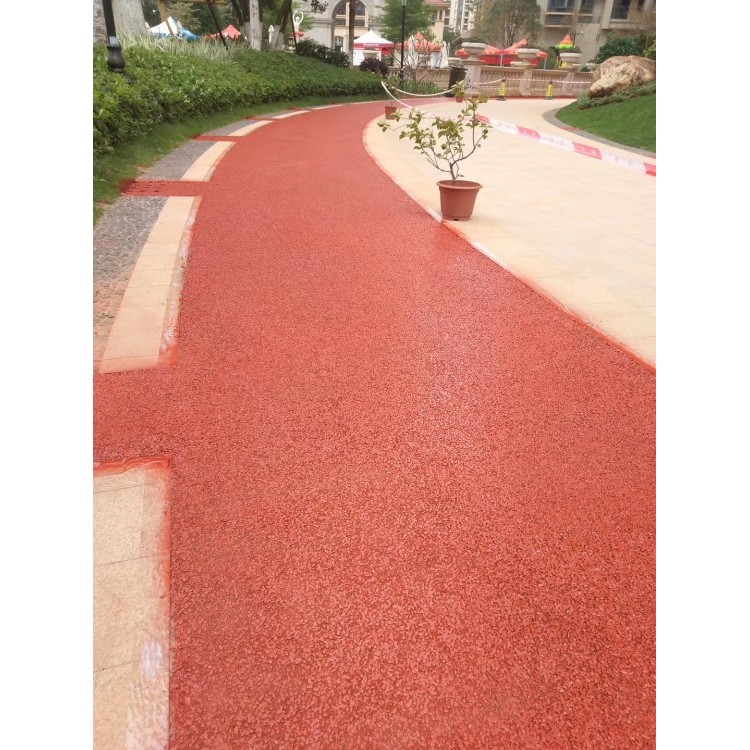 彩色透水透氣混凝土地坪是由彩色骨料、高標號混凝土、摻合料,水性樹脂、彩色強化劑、穩定劑及水等拌制而成的一種多孔輕質混凝土,由粗骨料表面包覆一薄層漿料相互粘結而成孔穴均勻分部的蜂窩狀結構,故具有透氣、透水和重量輕的特點。