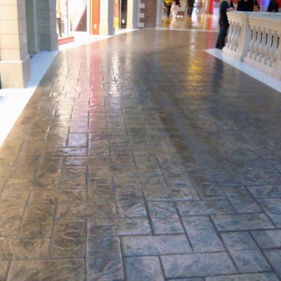 38℃以下,沖洗地坪表面待壓模地坪完全干燥凝固成型至少2-3天后方可用水或去污劑清洗表面。清洗表面一定在整個地坪清洗程度一致。否則會造成地面顏色深淺不一,涂敷養護劑待清洗硬化壓模地坪表面完全干燥無水分后至少一天以上方可涂敷液體養護劑,使硬化壓模地坪表面防污染防滑并再次強化,完成后硬化壓模地坪除了很好的裝飾性以外。其物理性能也非常穩定。壓模地坪養護階段必須防止人員隨便進出或進行其它項目的施工操作,應用范圍編輯,1市政工程街道、人行道、道路隔離帶、主題公園、文化廣場、景觀工程,2商業商務樓、酒店、餐館、酒吧、大型商場、會展中心、超市、商店、停車場。