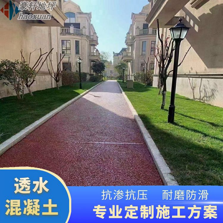 透水混凝土不能采用人工攪拌,采用普通混凝土攪拌機械進行攪拌,攪拌時按物料的規定比例及投料順序將物料投入攪拌機,先將膠結料和碎石攪拌約30秒后,使其初步混合,再將規定量的水分2-3次加入繼續進行攪拌約1.5-2分鐘。視攪拌均勻程度,可適當延長機械攪拌的時間,但不宜過長時間的攪拌。