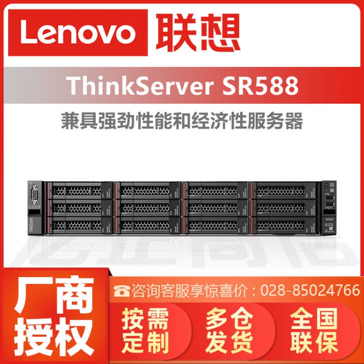 聯想(Lenovo)ThinkServer SR588服務器主機2U機架式 SR550升級版 2顆4210R【2.4G 20核40線程】 32內存/3*4T SATA/530-8I |