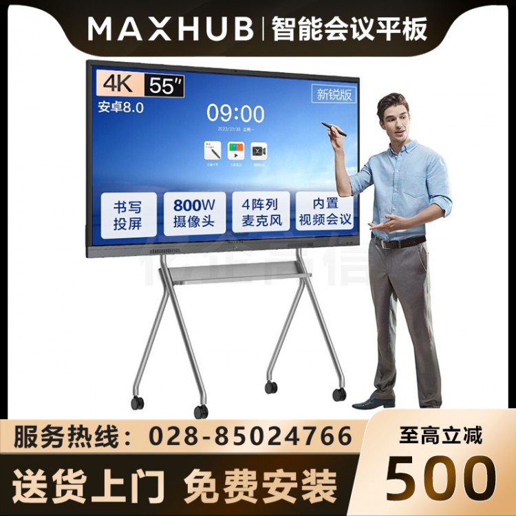 雅安MAXHUB智能會議平板代理商-成都MAXHUB會議平板授權經銷商-MAXHUB智能電子白板代理商-MAXHUB會議平板V5新銳版55英寸智能會議大屏教學視頻會議一體機電子白板EC55CA _咨詢熱線:028-85024766、18215624006(微信同號),成都強川科技有限公司_成都市武侯區磨子橋新世紀東樓18樓A座