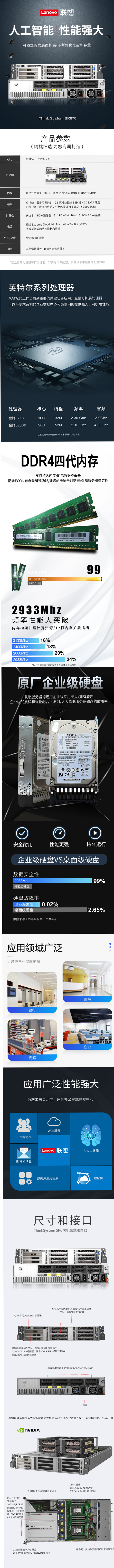 成都聯(lián)想ThinkSystem SR670機(jī)架式AI服務(wù)器2U主機(jī)GPU深度學(xué)習(xí)虛擬化存儲(chǔ)備份服務(wù)器 ThinkSystem服務(wù)器成都經(jīng)銷(xiāo)商 詳細(xì)信息 成都聯(lián)想服務(wù)器代理商 成都Lenovo服務(wù)器經(jīng)銷(xiāo)商 聯(lián)想塔式服務(wù)器 聯(lián)想機(jī)架式服務(wù)器 聯(lián)想存儲(chǔ)服務(wù)器 聯(lián)想數(shù)據(jù)庫(kù)服務(wù)器 聯(lián)想用友服務(wù)器 財(cái)務(wù)軟件服務(wù)器; Lenovo ThinkSystem SR670為人工智能(AI)和高性能計(jì)算(HPC)交付性能。每個(gè)2U節(jié)點(diǎn)支持四個(gè)大型或八個(gè)小型GPU,可滿足機(jī)器學(xué)習(xí)、深度學(xué)習(xí)和推理的計(jì)算密集型工作負(fù)載需求。依托英特爾至強(qiáng)”可擴(kuò)展處理器鉑金系列而構(gòu)建,可支持包括NVIDIA Tesla V100和T4在內(nèi)的高端GPU, ThinkSystem SR670為Al和HPC工作負(fù)載提供優(yōu)化的性能。