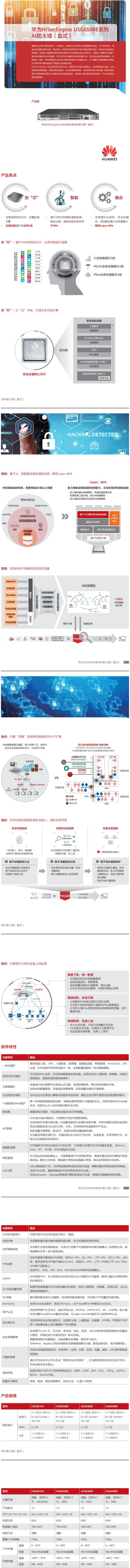 HiSecEngine USG6500E系列AI防火墻采用多核架構,內置轉發、加密、模式匹配三大協處理引擎,有效將小包轉發性能,IPS、AV業務性能以及IPSec業務性能提升2倍。