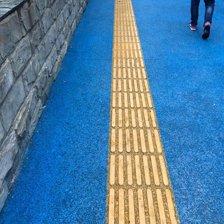 作為一種新的環保型、生態型的道路材料,該種透水路面面板鋪裝厚度根據巖性以及采用單粒徑巖石粒徑決定,一般厚度范圍在4~7cm。基層結構可以采用半剛性基層或者是級配碎石、級配礫石透水基層,具有良好的透水性,是由聚氨酯膠粘劑與單級配或間斷級配骨料按一定配合比拌合而成的新型路面材料。目前該種材料主要用于鋪裝景觀道路等輕交通路面。