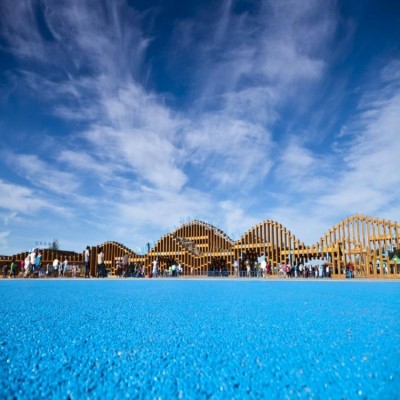 彩色透水混凝土路面是由小石子、42.5水泥、SR透水混凝土增強劑、水、色粉、面層保護劑等經一定比例調配拌制而成的一種多孔輕質的新型環保地面鋪裝材料。彩色透水混凝土是用表面粗骨料包裹著一層薄漿料相互粘結成蜂窩狀,它擁有約20%左右的孔隙,下雨時能夠讓雨水快速的流入地下,補充城市地下水資源;并能吸收車輛行駛產生噪音,能減少地面陽光反射熱能,降低地面溫度,減少城市“熱島效應”;還能有效的消除地面上的油類化合物等對環境污染的危害;