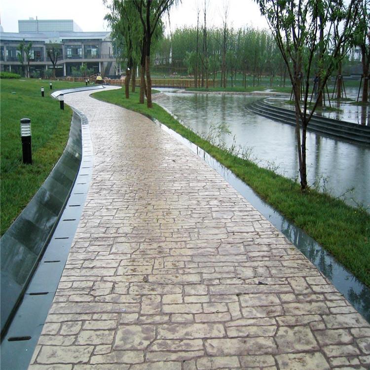 7、理論上對藝術地坪封閉2-3天后進行沖洗,正常情況下為了防止新造路面被污染,工程全部紋理壓印完成后統一進行沖洗。沖洗時不必將脫模粉全部沖洗干凈,應留有10%左右的脫模粉顏色,這樣的藝術地面就會有效果很好的漸變效果。