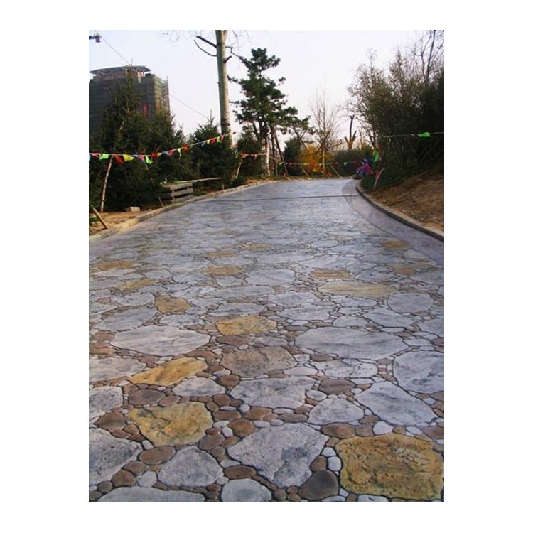 5、使用藝術(shù)地坪模具對(duì)地坪面層進(jìn)行紋理處理。藝術(shù)地坪模具應(yīng)配套使用,首先確定好紋理的分布方向,選好一塊模具放置的位置和角度,然后其它的模具依次緊貼一塊模具放置。彩色混凝土藝術(shù)地坪壓模采用壓模,壓模應(yīng)由技術(shù)較好的人員進(jìn)行作業(yè)以保證壓紋深度一致和模具放置的準(zhǔn)確性。