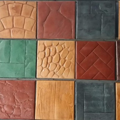 5、使用藝術地坪模具對地坪面層進行紋理處理。藝術地坪模具應配套使用,首先確定好紋理的分布方向,選好一塊模具放置的位置和角度,然后其它的模具依次緊貼一塊模具放置。彩色混凝土藝術地坪壓模采用壓模,壓模應由技術較好的人員進行作業以保證壓紋深度一致和模具放置的準確性。