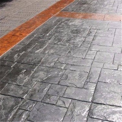 5、使用藝術地坪模具對地坪面層進行紋理處理。藝術地坪模具應配套使用,首先確定好紋理的分布方向,選好一塊模具放置的位置和角度,然后其它的模具依次緊貼一塊模具放置。彩色混凝土藝術地坪壓模采用壓模,壓模應由技術較好的人員進行作業以保證壓紋深度一致和模具放置的準確性。