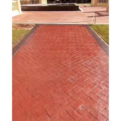5、使用藝術(shù)地坪模具對(duì)地坪面層進(jìn)行紋理處理。藝術(shù)地坪模具應(yīng)配套使用,首先確定好紋理的分布方向,選好一塊模具放置的位置和角度,然后其它的模具依次緊貼一塊模具放置。彩色混凝土藝術(shù)地坪壓模采用壓模,壓模應(yīng)由技術(shù)較好的人員進(jìn)行作業(yè)以保證壓紋深度一致和模具放置的準(zhǔn)確性。