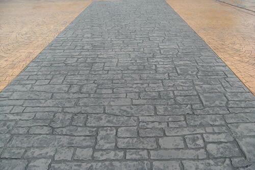 提漿收光 → 播撒強(qiáng)化料 → 精收光 →補(bǔ)強(qiáng)化料 →二次收光→撒脫模粉→用模具壓印地面→封閉道路→沖洗藝術(shù)地面→涂刷保護(hù)劑→完工
