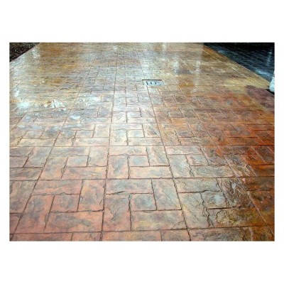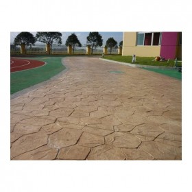 對比壓模地坪舊工藝,新工藝的主要不同在于上色和脫模,新工藝使用的是混凝土著色劑對地面進行上色,不同于舊工藝,金潤混凝土著色劑施工是在混凝土終凝之后在混凝土表面噴灑的。混凝土著色劑原理是與混凝土中的金屬元素其反應生成顏色,顏色耐候性好,在室外不怕紫外線暴曬。可以運用多種顏色相互疊加,使產品圖案更加真實,這僅僅滿足了不同場所的需求,更是滿足了個性化的建筑設計要求。