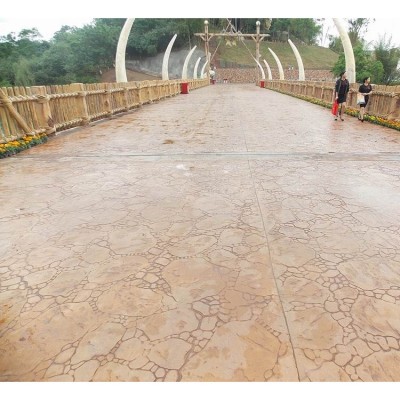 6、紋理壓印完成后應立即封閉施工現場,避免無關人員誤入作業區,破壞新完成的彩色地面。遭破壞的藝術地面將無法完美地進行修復。