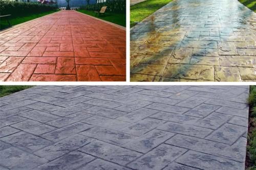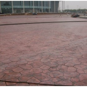5、使用藝術地坪模具對地坪面層進行紋理處理。藝術地坪模具應配套使用,首先確定好紋理的分布方向,選好一塊模具放置的位置和角度,然后其它的模具依次緊貼一塊模具放置。彩色混凝土藝術地坪壓模采用壓模,壓模應由技術較好的人員進行作業以保證壓紋深度一致和模具放置的準確性。