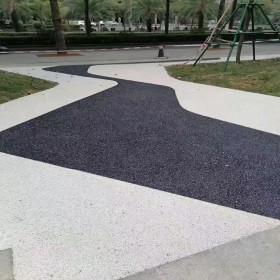 露骨彩色透水混凝土地坪是一種多孔、輕質、無細骨料混凝土,由粗骨料表面包覆一層膠結料相互粘結而形成孔穴均勻分布的蜂窩狀結構,故具有透水、透氣和質量輕的特點。面層施工必須計算前期高度,合理控制高度能夠使壓實后與設計高度一致,符合道路面層的設計要求,攤平后采用機械進行碾壓,以保證透水混凝土路面的密實性,從而保證混凝土的強度。