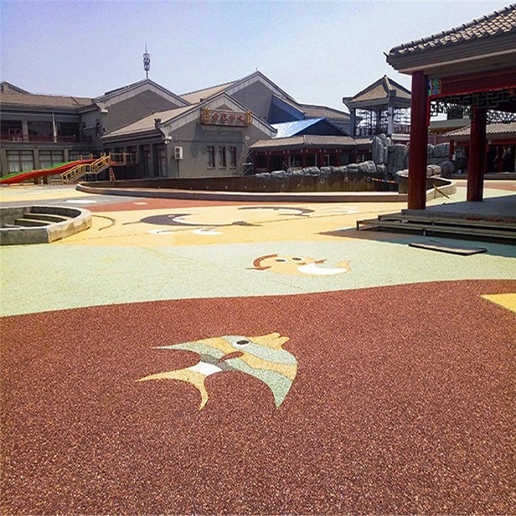 作為一種新的環保型、生態型的道路材料,該種透水路面面板鋪裝厚度根據巖性以及采用單粒徑巖石粒徑決定,一般厚度范圍在4~7cm。基層結構可以采用半剛性基層或者是級配碎石、級配礫石透水基層,具有良好的透水性,是由聚氨酯膠粘劑與單級配或間斷級配骨料按一定配合比拌合而成的新型路面材料。目前該種材料主要用于鋪裝景觀道路等輕交通路面。