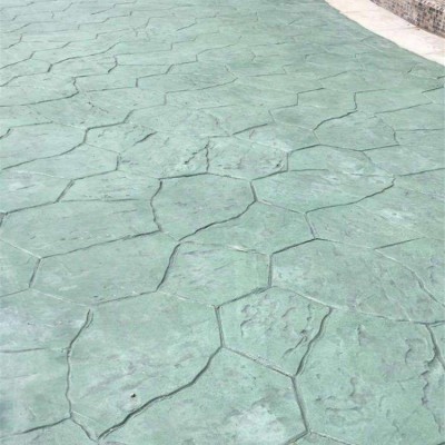 5、使用藝術(shù)地坪模具對地坪面層進行紋理處理。藝術(shù)地坪模具應(yīng)配套使用,首先確定好紋理的分布方向,選好一塊模具放置的位置和角度,然后其它的模具依次緊貼一塊模具放置。彩色混凝土藝術(shù)地坪壓模采用壓模,壓模應(yīng)由技術(shù)較好的人員進行作業(yè)以保證壓紋深度一致和模具放置的準確性。