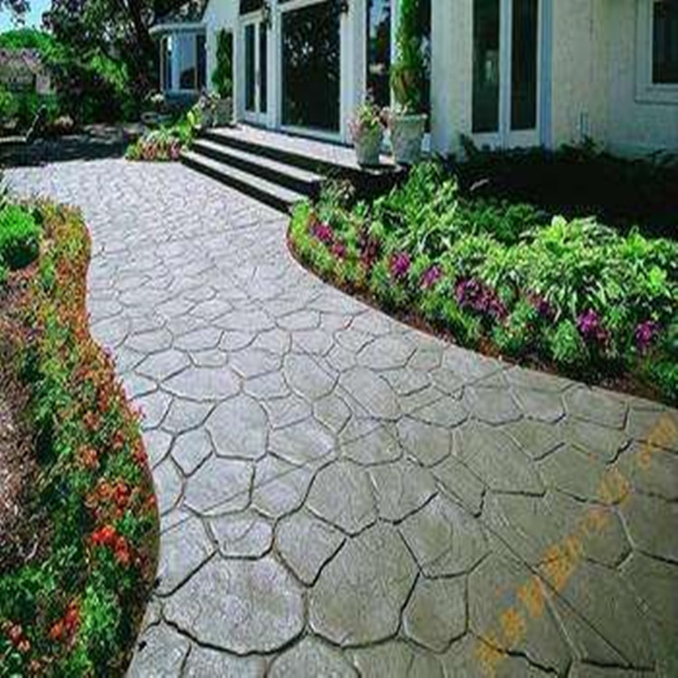 5、使用藝術地坪模具對地坪面層進行紋理處理。藝術地坪模具應配套使用,首先確定好紋理的分布方向,選好一塊模具放置的位置和角度,然后其它的模具依次緊貼一塊模具放置。彩色混凝土藝術地坪壓模采用壓模,壓模應由技術較好的人員進行作業(yè)以保證壓紋深度一致和模具放置的準確性。