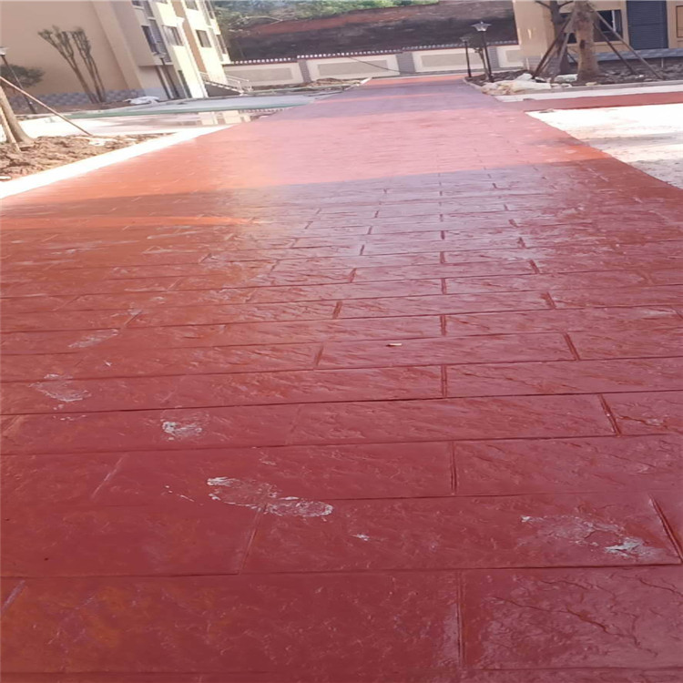 5、使用藝術(shù)地坪模具對(duì)地坪面層進(jìn)行紋理處理。藝術(shù)地坪模具應(yīng)配套使用,首先確定好紋理的分布方向,選好一塊模具放置的位置和角度,然后其它的模具依次緊貼一塊模具放置。彩色混凝土藝術(shù)地坪壓模采用壓模,壓模應(yīng)由技術(shù)較好的人員進(jìn)行作業(yè)以保證壓紋深度一致和模具放置的準(zhǔn)確性。