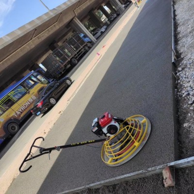 1、混凝土以后,當(dāng)混凝土初凝由施工人員采用大抹刀對混凝土表面進(jìn)行收光。收光時應(yīng)注意表面上是否存在浮漿,如果有多余的浮漿,應(yīng)刮出。提漿的作用是將彩色強(qiáng)化料與砼完整結(jié)合,收光過程中若出現(xiàn)有較大的骨料(石塊)浮在表面應(yīng)撿出。