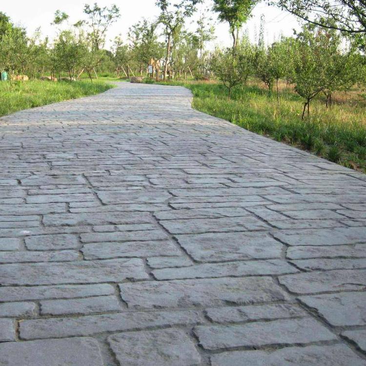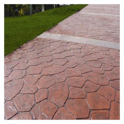 5、使用藝術(shù)地坪模具對地坪面層進(jìn)行紋理處理。藝術(shù)地坪模具應(yīng)配套使用,首先確定好紋理的分布方向,選好一塊模具放置的位置和角度,然后其它的模具依次緊貼一塊模具放置。彩色混凝土藝術(shù)地坪壓模采用壓模,壓模應(yīng)由技術(shù)較好的人員進(jìn)行作業(yè)以保證壓紋深度一致和模具放置的準(zhǔn)確性。