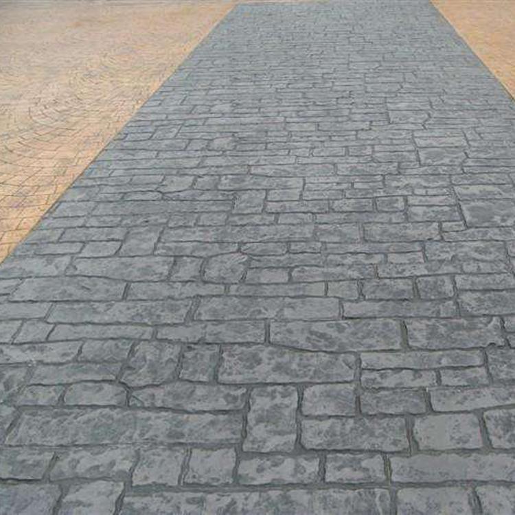 5、使用藝術地坪模具對地坪面層進行紋理處理。藝術地坪模具應配套使用,首先確定好紋理的分布方向,選好一塊模具放置的位置和角度,然后其它的模具依次緊貼一塊模具放置。彩色混凝土藝術地坪壓模采用壓模,壓模應由技術較好的人員進行作業以保證壓紋深度一致和模具放置的準確性。
